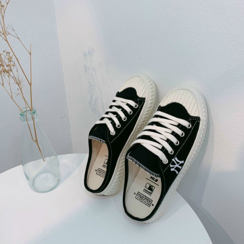 Giới thiệu Giày sục thể thao, giày bít mũi đạp gót Ny đế 3cm phong cách(2 màu đen+kem)