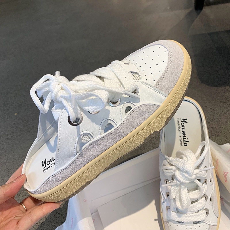 Giới thiệu Giày sục thể thao nữ da lộn khoét hông thoáng khí, giày hở gót BAMY nữ cao 3cm