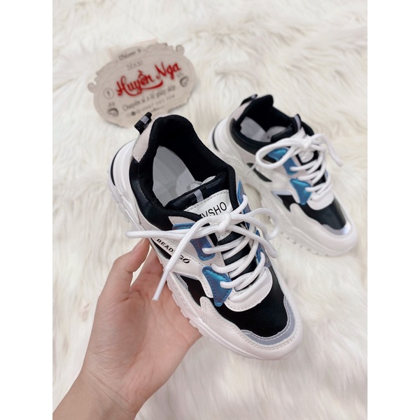 Giới thiệu Giày thể thao nữ đế răng cửa màu trắng đen xanh