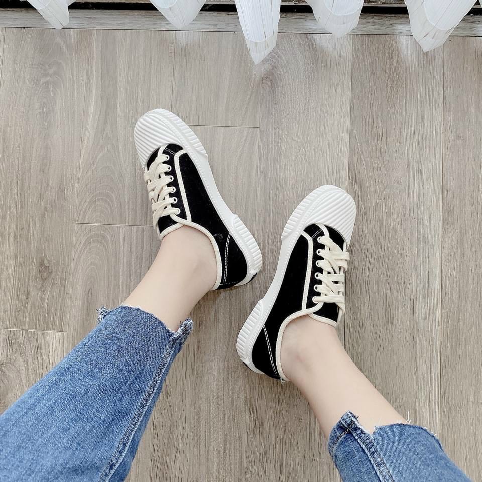- Giày thể thao nữ giá rẻ đế bằng trắng đen đẹp thời trang