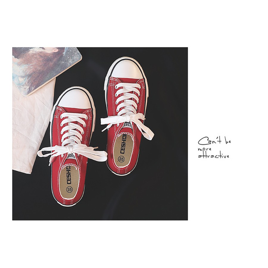 Giày vải cho nam nữ cổ thấp màu đỏ kiểu dáng thể thao