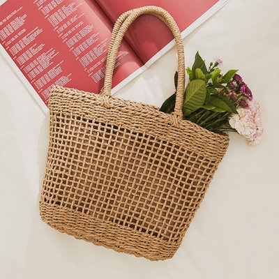 Giỏ cói đi biển quai xách Tote - đan họa tiết lưới caro thưa - phong cách Vintage
