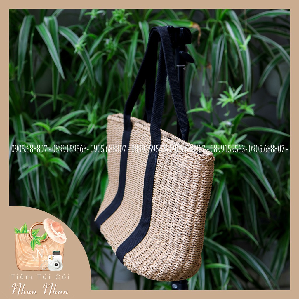 Túi Ví Nữ > Túi quai xách || Giỏ xách cói quai đen