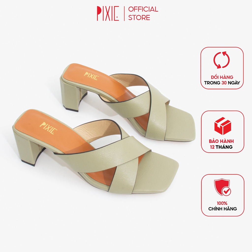 Giới thiệu Guốc Cao Gót 5cm Đế Vuông Quai Chéo Màu Đen Pixie X430