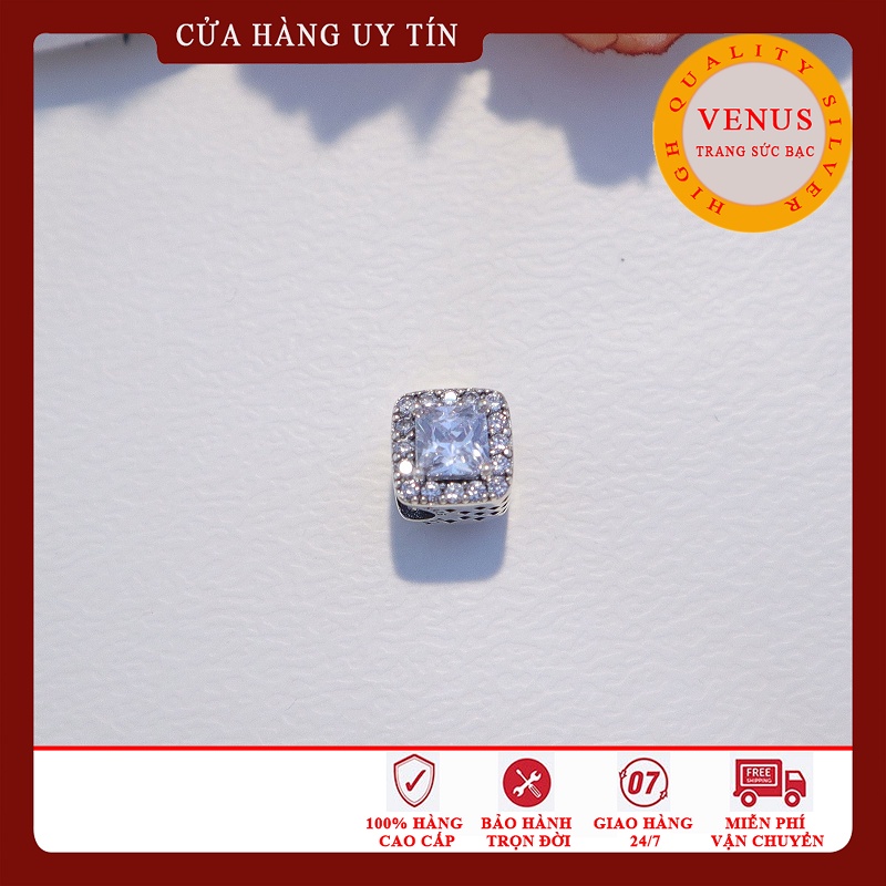 Giới thiệu [Hàng cao cấp] Charm bạc 925 hình trụ đá vuông 4 chấu- Mã sản phẩm VENUSTDT