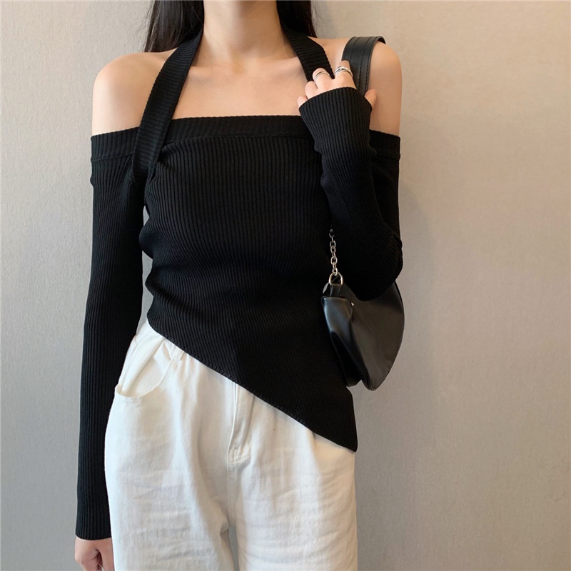 💞 Croptop điệu đà trễ vai Form Ôm người chất Len Tăm Hàn Quốc 💞