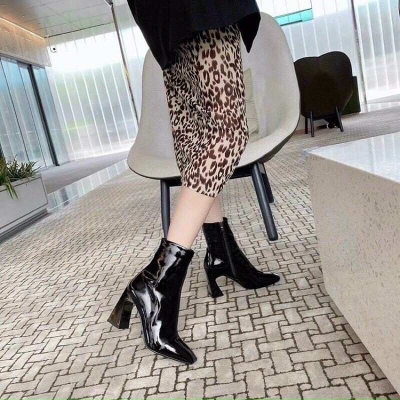 Giày Dép Nữ > Bốt > Bốt thời trang || [Hàng có sẵn] Boots nữ I Bốt lửng da bóng khoá cạnh gót khoét 7p sang xịn