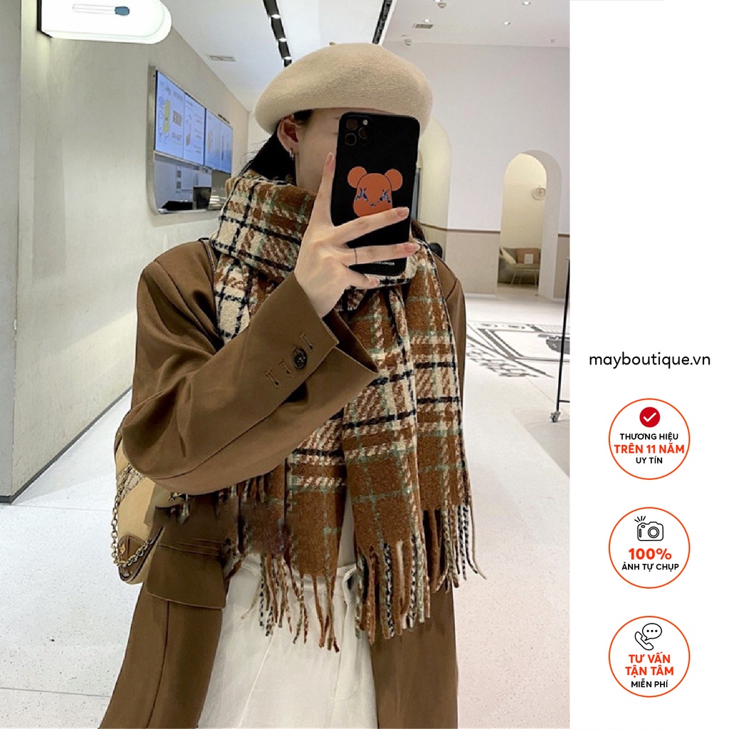 - Tên sản phẩm: Khăn dạ kẻ caro May Boutique khăn quàng cổ dạ kẻ có tua rua PKH21A_110.062
