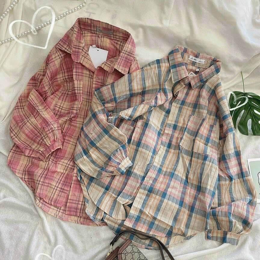 Giới thiệu [ Hàng Đẹp Bán Shop ] Áo Sơ mi kẻ hồng from rộng, Sơ mi nữ dáng rộng - thoitrangsvtn