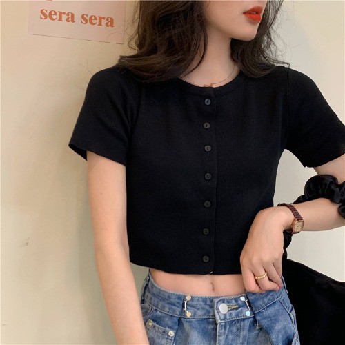 Thời Trang Nữ > Áo > Áo sơ mi || (HÀNG LOẠI 1 - FREE SHIP) Áo Croptop Cổ Tròn Cài Cúc