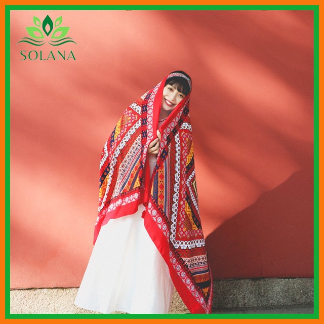Giới thiệu [HÀNG LOẠI 1]_Khăn Choàng Boho Họa Tiết Đỏ Đi Biển 1001 Công Dụng Hot Trend SOLANA