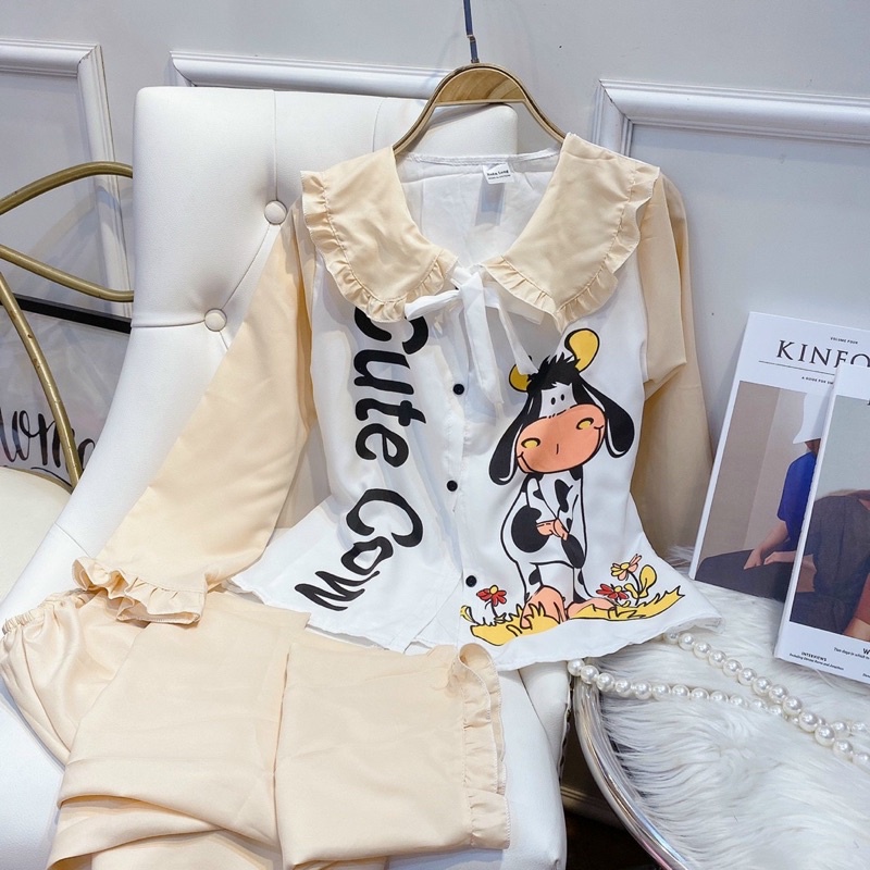 Thời Trang Nữ > Đồ ngủ > Khác || [Hàng Mới Về] ĐỒ BỘ CỔ SEN BÈO NƠ HOẠ TIẾT BÒ SỮA SIÊU CƯNG