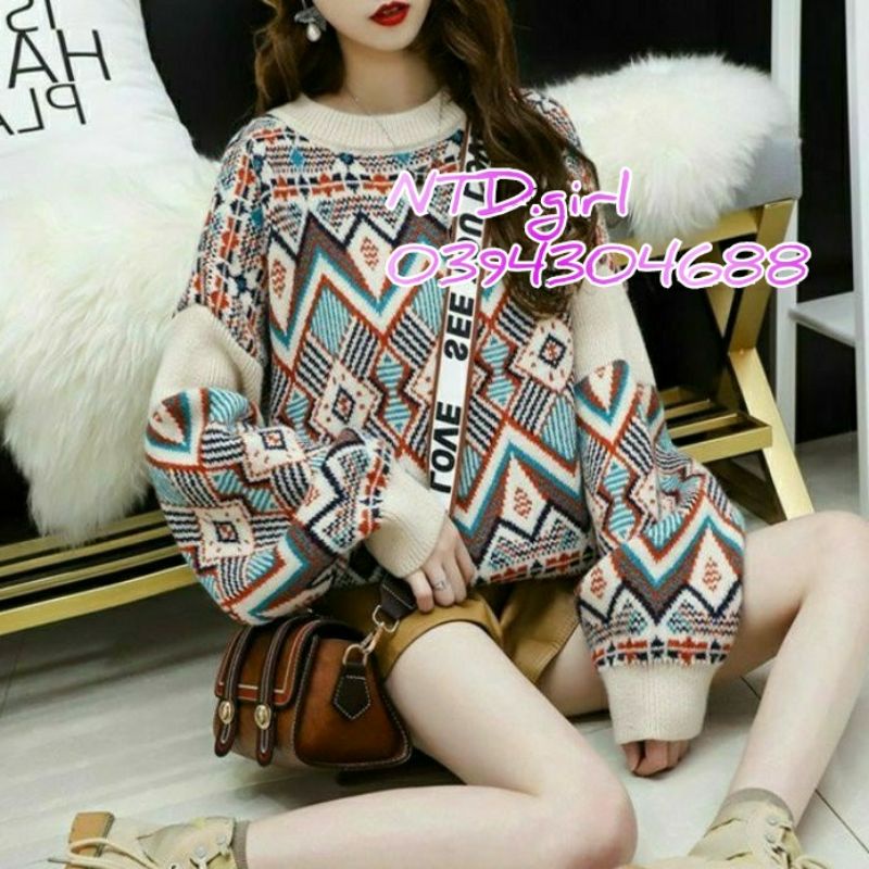 Giới thiệu Hàng nhập - Áo len nữ form rộng hoa văn thổ cẩm, áo kiểu thu đông bohemian