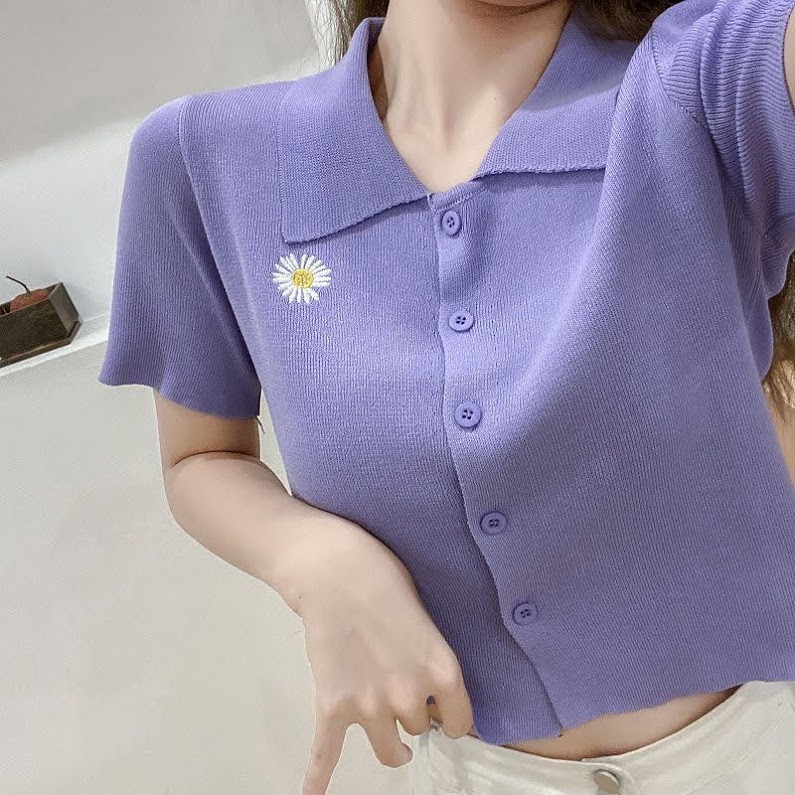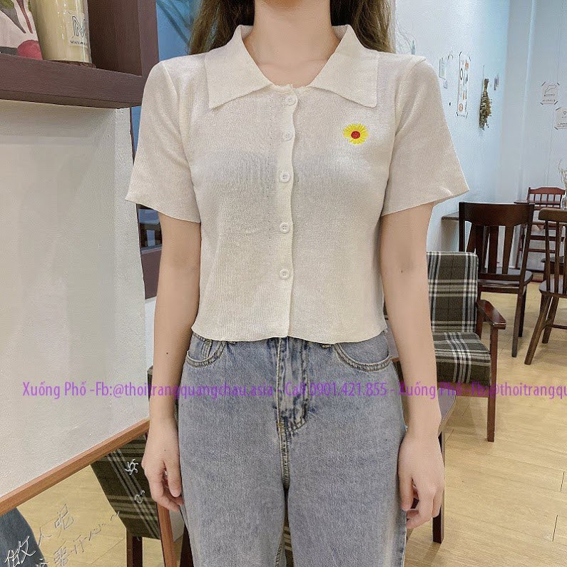 Thời Trang Nữ > Áo > Áo polo || [Hàng Nhập] Áo Thun Dệt Kim Cổ Polo Hoa Cúc QC 106