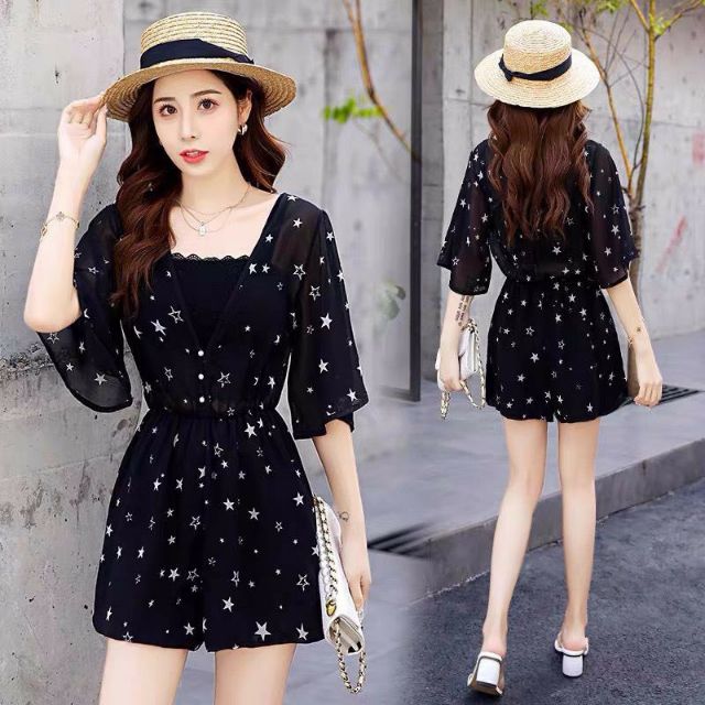 Hàng nhập - Jumpsuit ngắn voan lụa cánh tiên