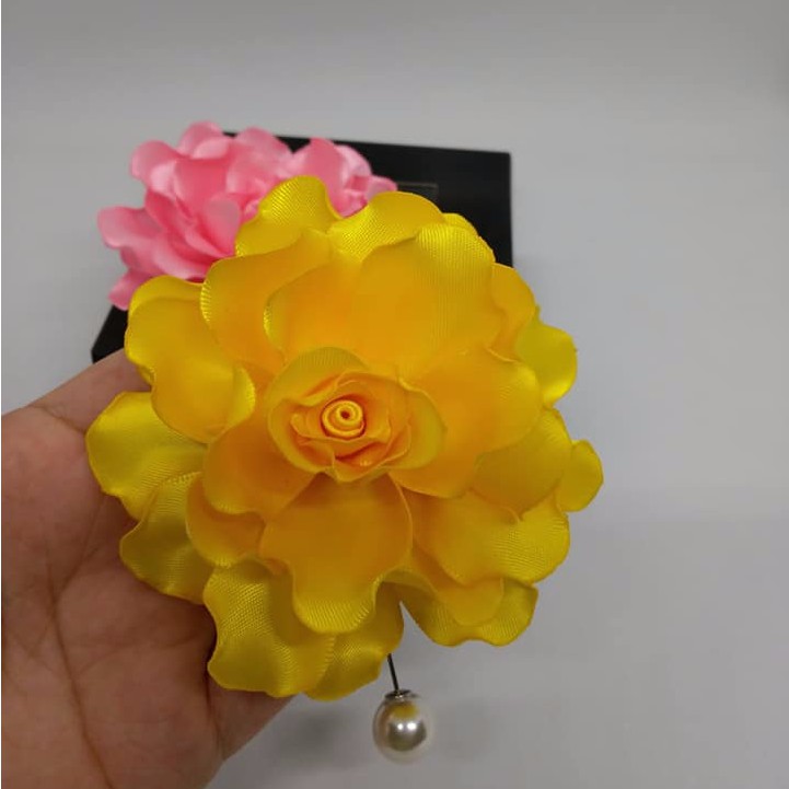 - Hoa cài áo có đường kính 9-10cm, là phụ kiện cao cấp cài lên áo, lên váy rất sang trọng quý phái.