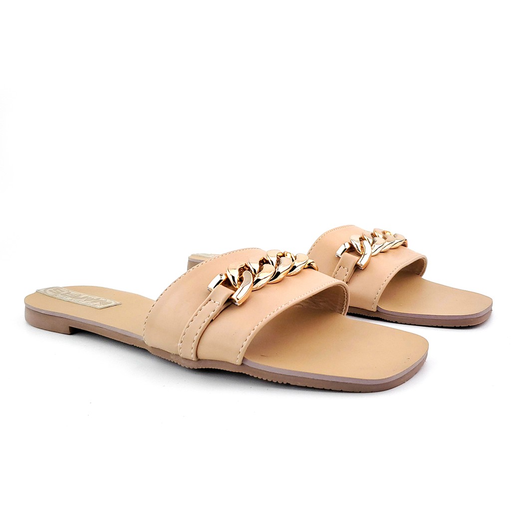 👉Dép nữ đế bệt quai ngang dây xích đan thời trang D0550: Được thiết kế trẻ trung, cá tính với chất liệu da mờ, quai ngang ôm chân, họa tiết dây xích nổi bật mang lại sự hiện đại trẻ trung cho người sử dụng.