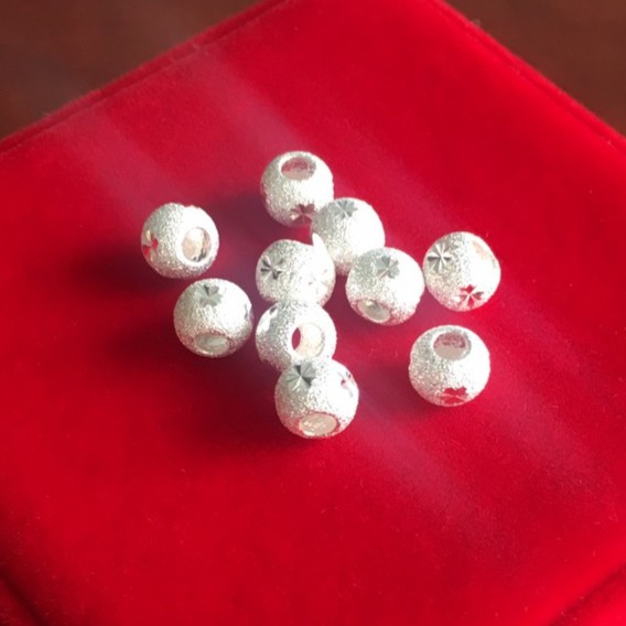 Phụ Kiện Thời Trang > Phụ kiện thêm > Mặt dây chuyền và Charm || Hạt Bi Bạc 925 Tròn Khắc Hoa
