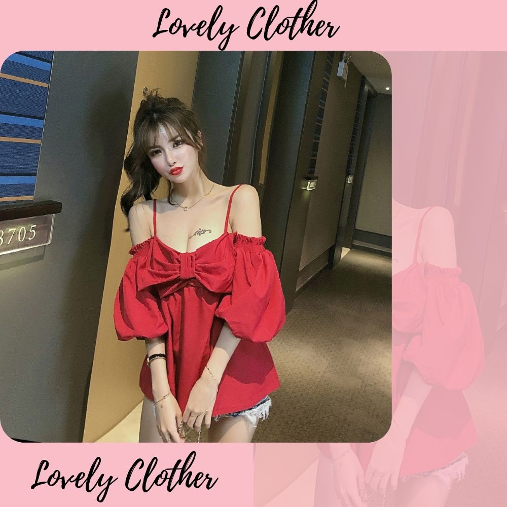 Giới thiệu [HCM] Áo kiểu nữ, áo nữ 2 dây tay dài màu đỏ đủ size S M L hàng VNXK SKUA-27