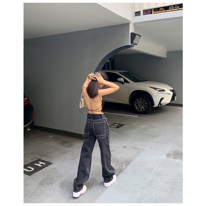 Màu đen khói cực chất, form ống rộng dài hợp trend trẻ trung, viền chỉ trắng tạo điểm nhấn