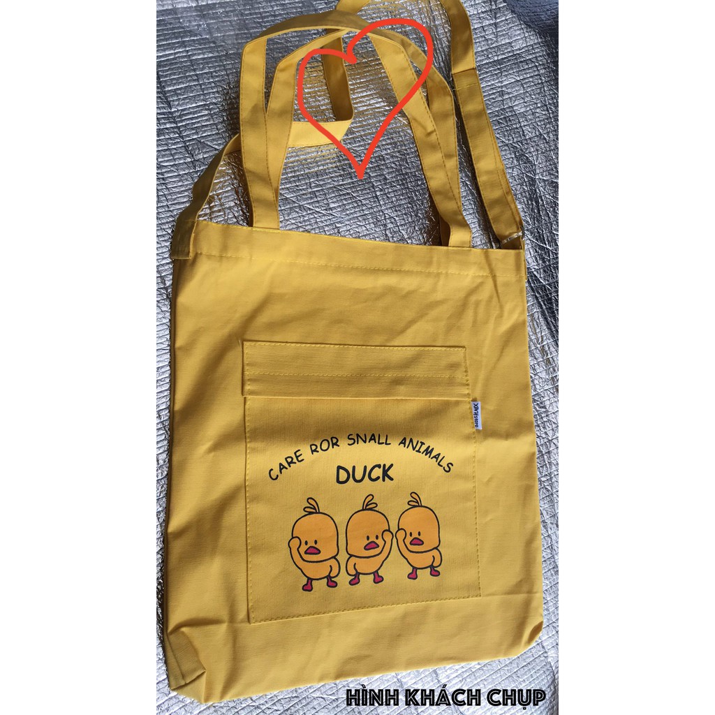 Giới thiệu [Hình Thật] Túi Vải Tote Đeo Chéo 3 Em Vịt Cute