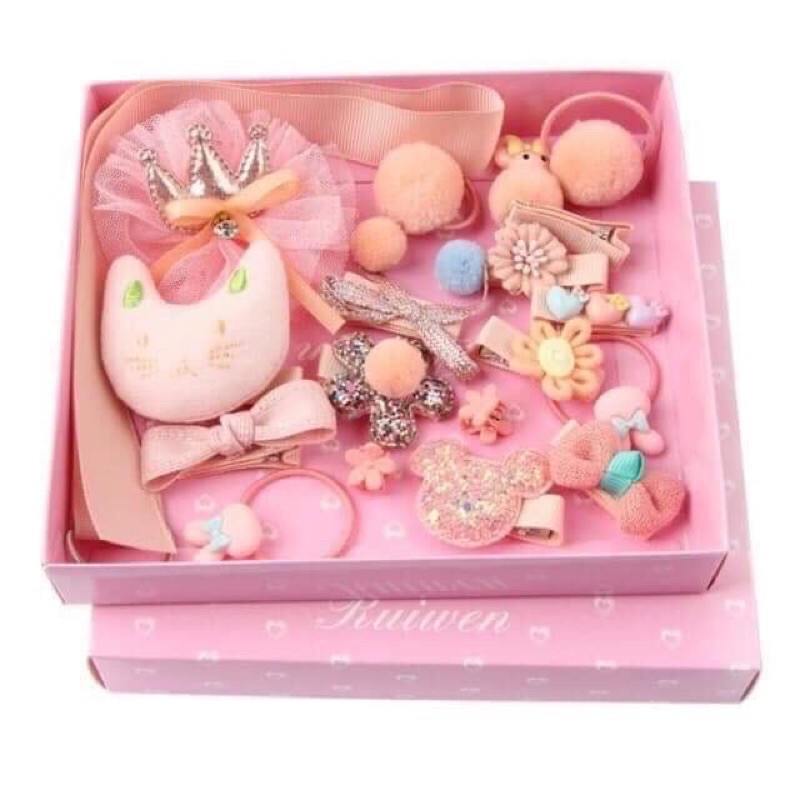 👉👉👉Mở bên trong hộp là 18 chi tiết phụ kiện kẹp, cặp, buộc tóc đủ hình dễ thương.... sản phẩm cực chắc chắn trong gia công nên hứa hẹn là HOT lắm lunnn.
