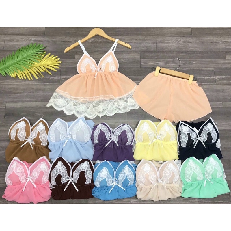Set bộ ngủ sexy chất voan viền ren, áo có mút ngực dáng xoè tôn dáng siêu cưng 🥰