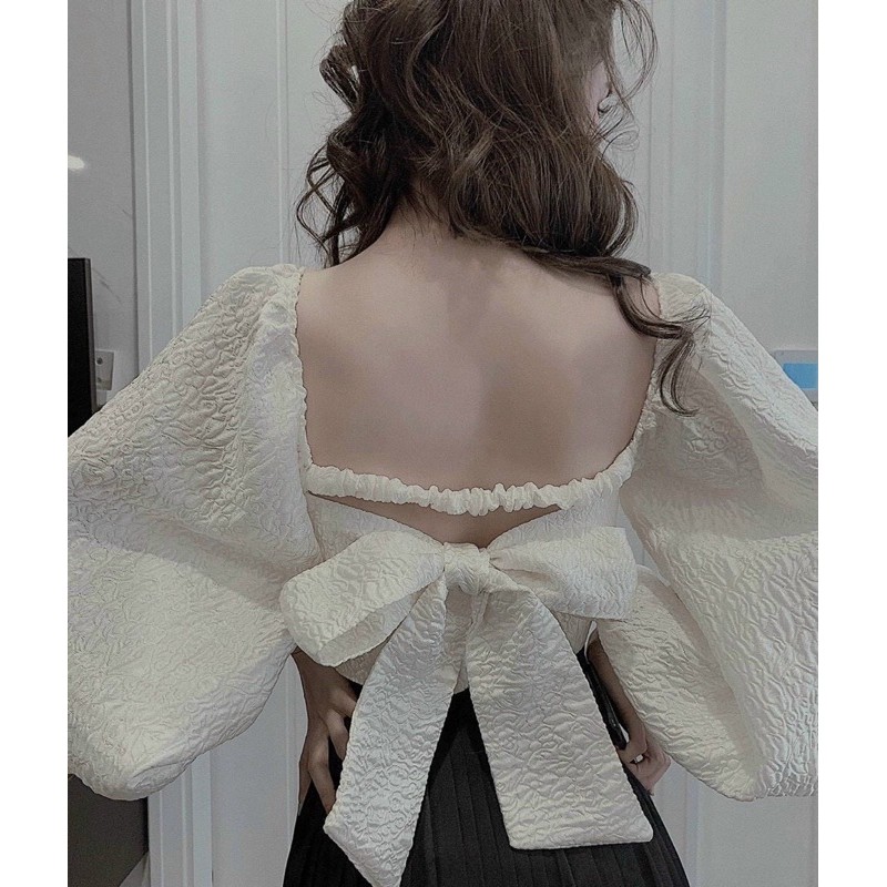 Giới thiệu HOT TREND - Áo kiểu croptop xốp vân nổi tay phồng kèm lót ngực xịn xò siêu đẹp