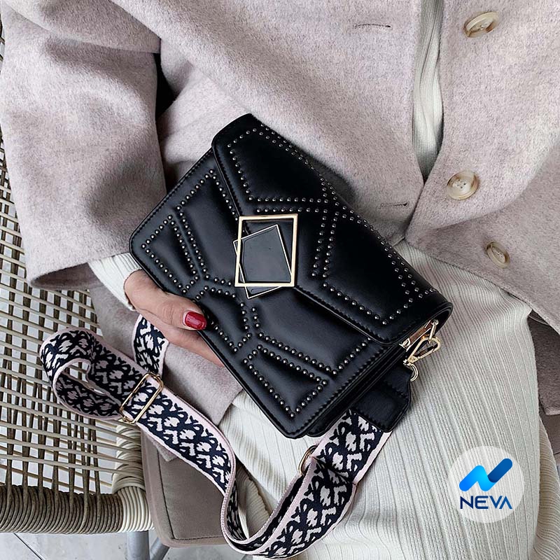 Giới thiệu (HOT) Túi đeo chéo khóa nghiêng nạm đinh da cao cấp NEVA791