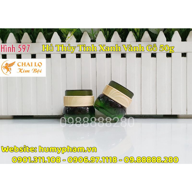 HỦ ĐỰNG KEM THỦY TINH XANH NẮP VÀNH GỖ 50g