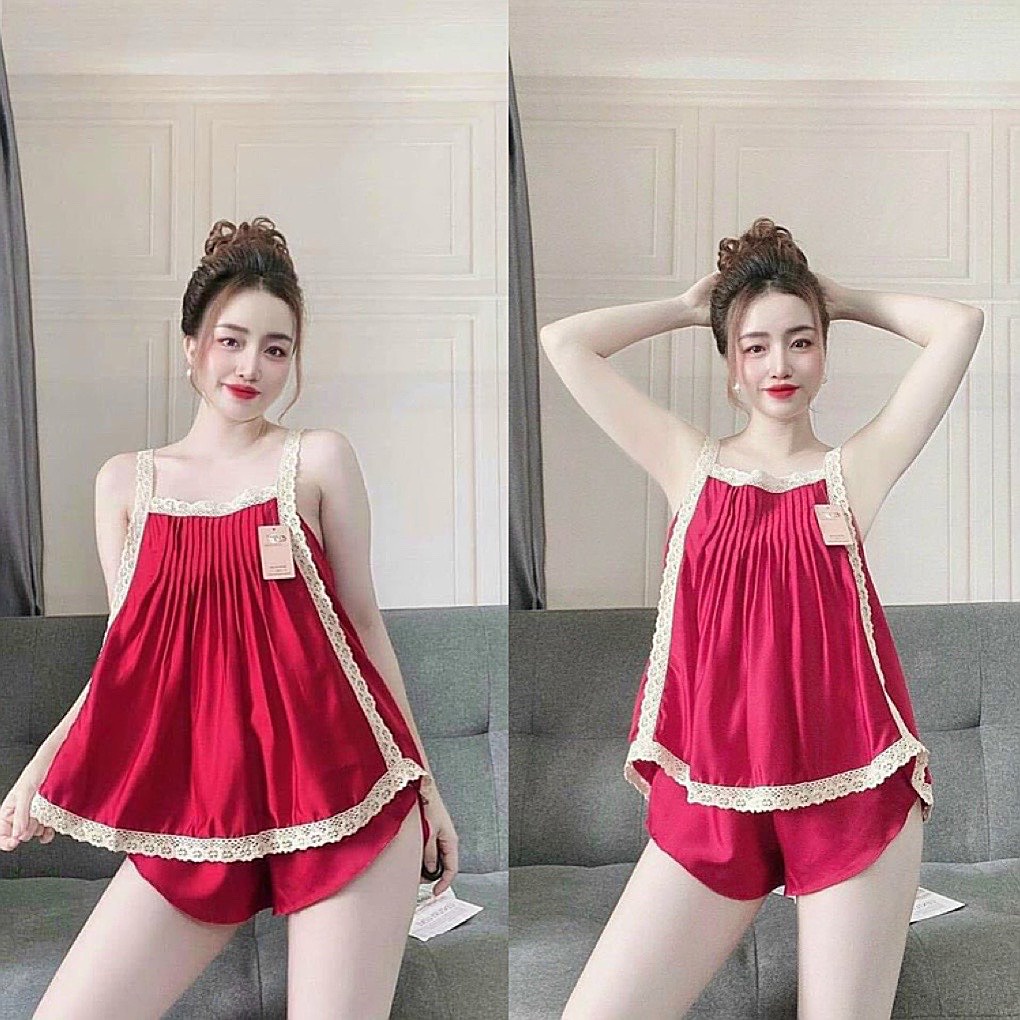 Thời Trang Nữ > Đồ ngủ > Khác || Đồ bộ đùi ngủ sexy dập ly viền ren satin cao cấp