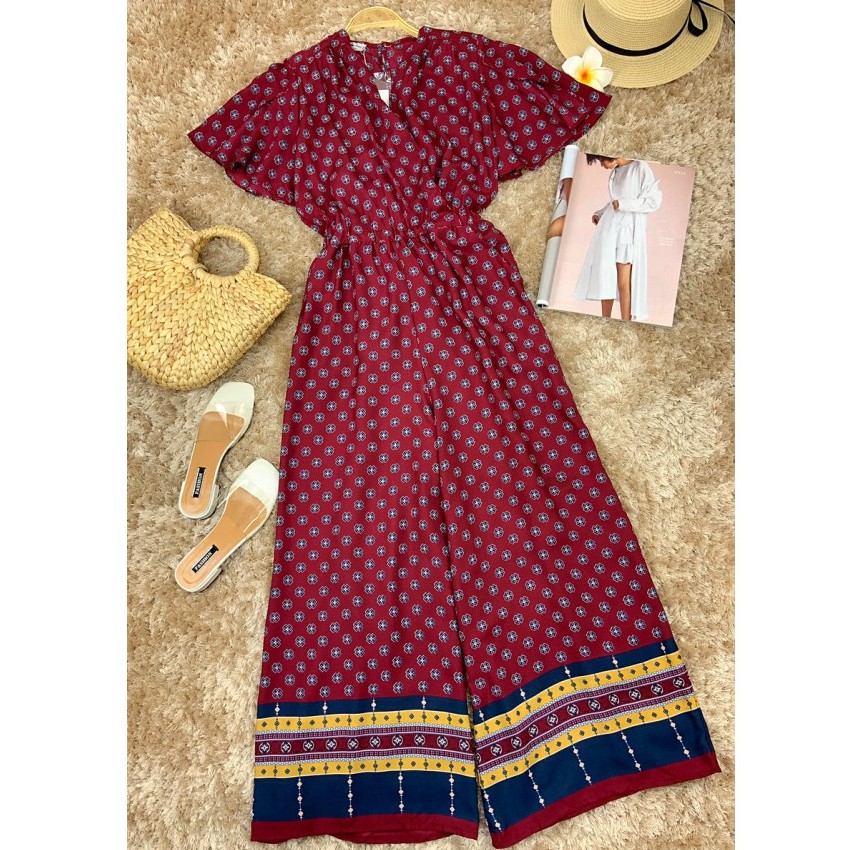 Thời Trang Nữ > Đồ liền thân > Đồ bay (Jumpsuits) || Jum thổ cẩm kẻ ô caro dài ống rộng phối cổ chéo/jumsuite nữ ống rộng