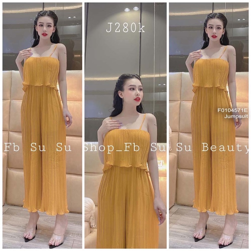 Jumpsuit dập ly ống suông phối bèo ngực 2 dây!