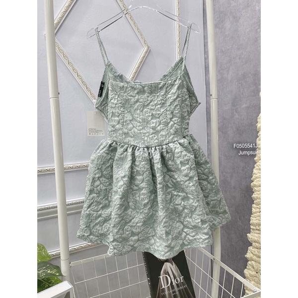 Jumpsuit gấm xốp giả váy dáng xòe 2 dây hở lưng!