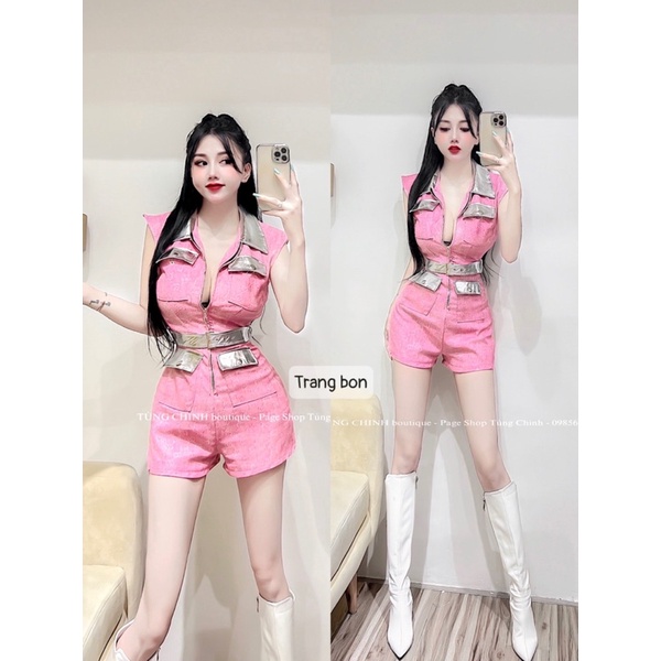 Thời Trang Nữ > Đồ liền thân > Đồ bay (Jumpsuits) || Jumsuit hồng phối da bạc cực chất