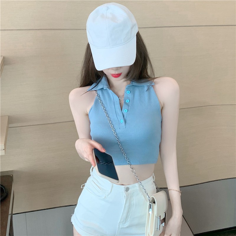 Thời Trang Nữ > Áo > Áo polo || [Kèm Video SP] Áo Ba Lỗ Nữ Thun Tăm Cổ Polo Dáng Croptop Nữ Cao Cấp Cá Tính Thời Trang Trẻ Trung Sugal TOP NU SG 032V2