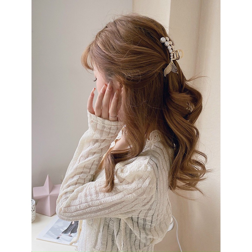 Kẹp tóc càng cua (gấp tóc) kiểu xương cá kim loại màu vàng có đính hạt DTOnline