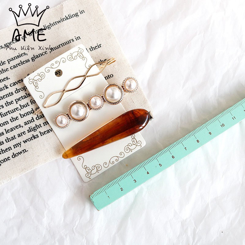 Giới thiệu Bộ kẹp tóc ngọc cặp tóc kim loại đẹp phong cách Hàn Quốc Ame Beauty