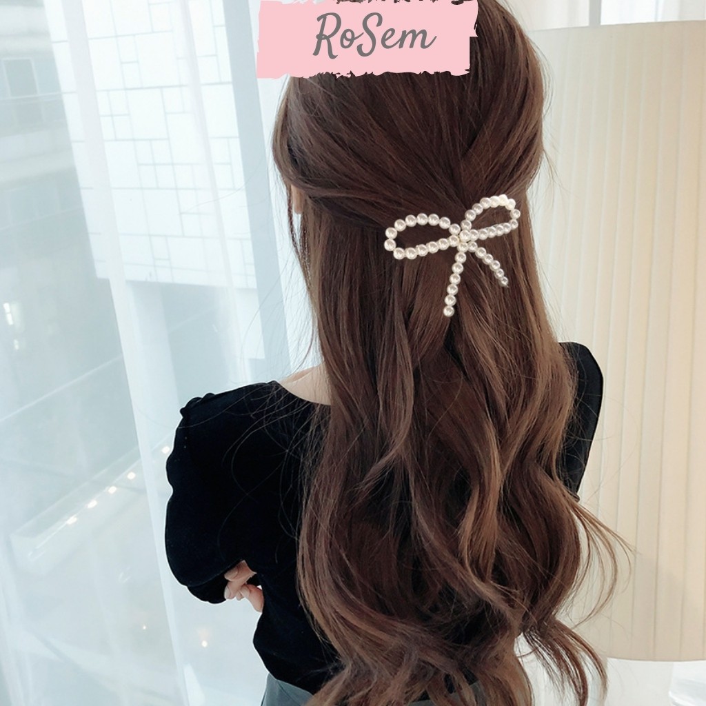 - Loại sản phẩm: Kẹp tóc nửa đầu hình chiếc nơ ngọc trai nhân tạo