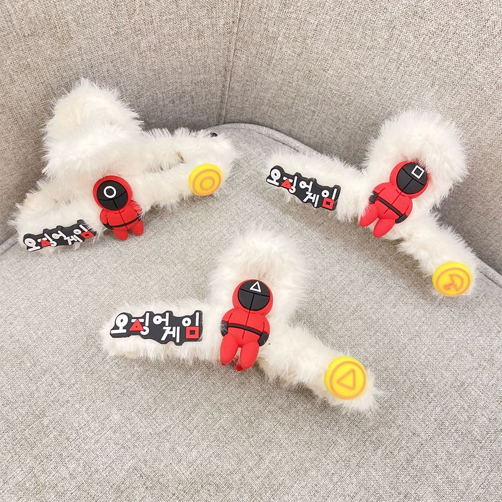 Phụ Kiện Thời Trang > Phụ kiện tóc > Kẹp tóc || Kẹp tóc vải lông phong cách phim Hàn Quốc Squid game , Trò chơi con mực dễ thương cho nữ