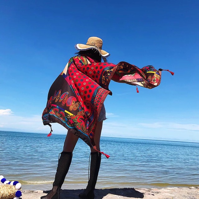 Khăn choàng boho - khăn choàng thổ cẩm du lịch biển