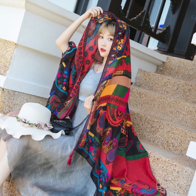 Giới thiệu Khăn Đi Biển Hoạ Tiết Đỏ Công Phong Cách Boho Vintage