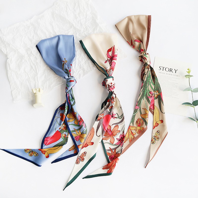 Giới thiệu Khăn lụa dáng dài họa tiết hoa lá Vintage dễ thương AKL97