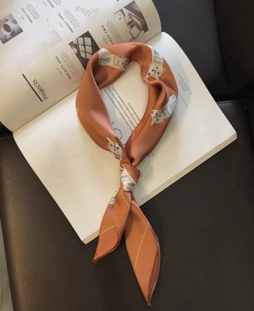 Phụ Kiện Thời Trang > Khăn choàng || Khăn lụa vuông size 60*60cm choàng cổ thanh lịch có thể quấn áo nhiều mẫu in hình con mèo