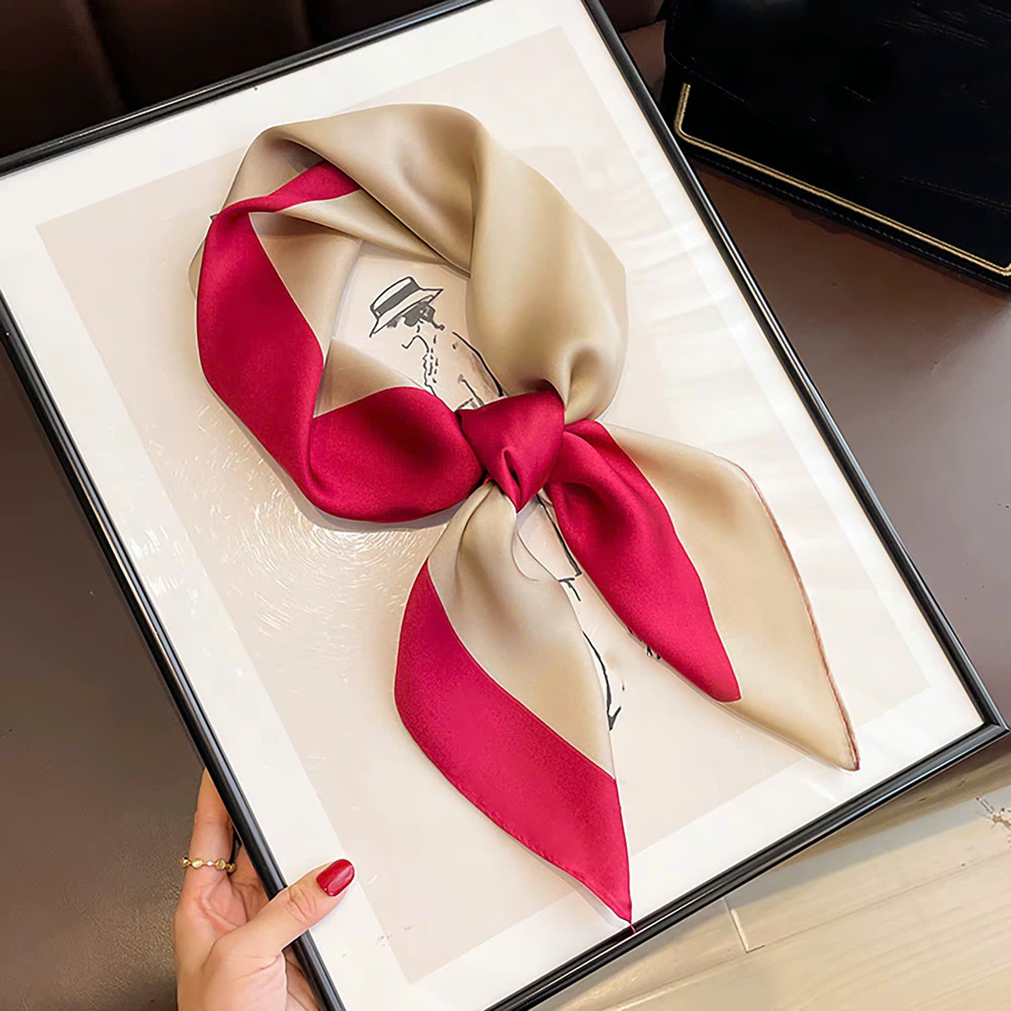 2. Thiết kế : Khăn quàng cổ hình vuông nhỏ. Phong cách phù hợp tất cả.