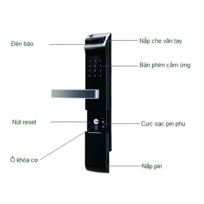 Chức năng khóa trái trong (kích hoạt chế độ này từ bên ngoài. Khi đó, ai mở cửa từ phía trong thì sẽ có âm thanh báo động), và chức năng khóa trái ngoài- chống làm phiền