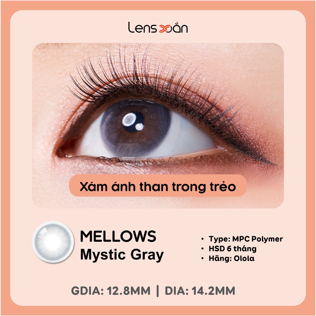 Giới thiệu KÍNH ÁP TRÒNG MELLOWS MYSTIC GRAY của Olola (6 tháng): Kính áp tròng xám ánh xanh nhẹ tự nhiên | Lens Xoắn (GIÁ 1 CHIẾC)