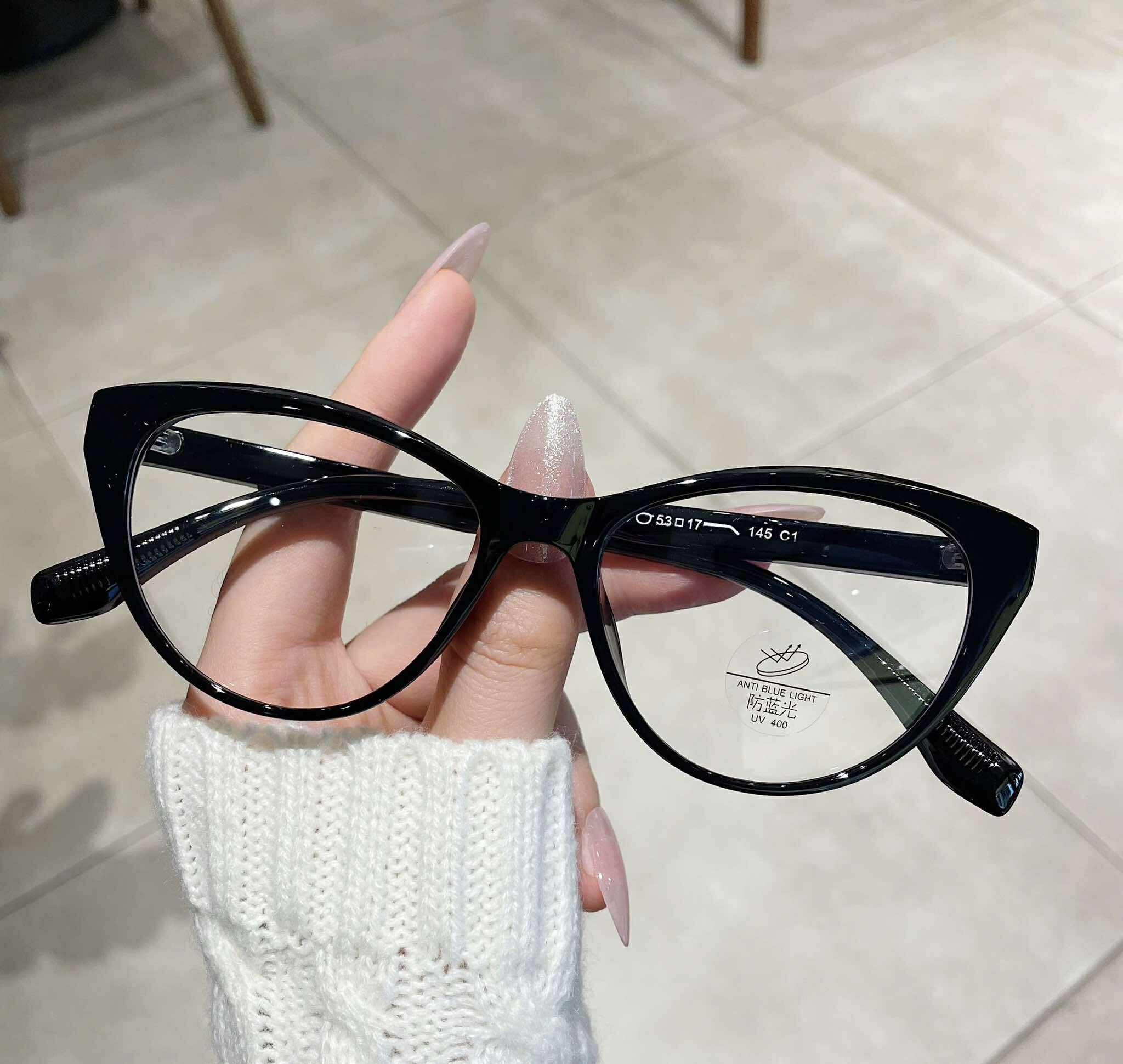 Kính Mắt mèo thời trang thiết kế đơn giản gọng nhựa dẻo màu đen siêu bền, siêu nhẹ