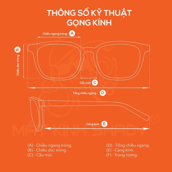 Kích thước | *Thông tin chi tiết các thông số kỹ thuật:(A) - Chiều ngang tròng44 (mm)(B) - Chiều dọc tròng31 (mm)(C) - Cầu mũi22 (mm)(D) - Tổng chiều ngang128 (mm)(E) - Càng kính137 (mm)(F) - Trọng lượng18 (gam) |
