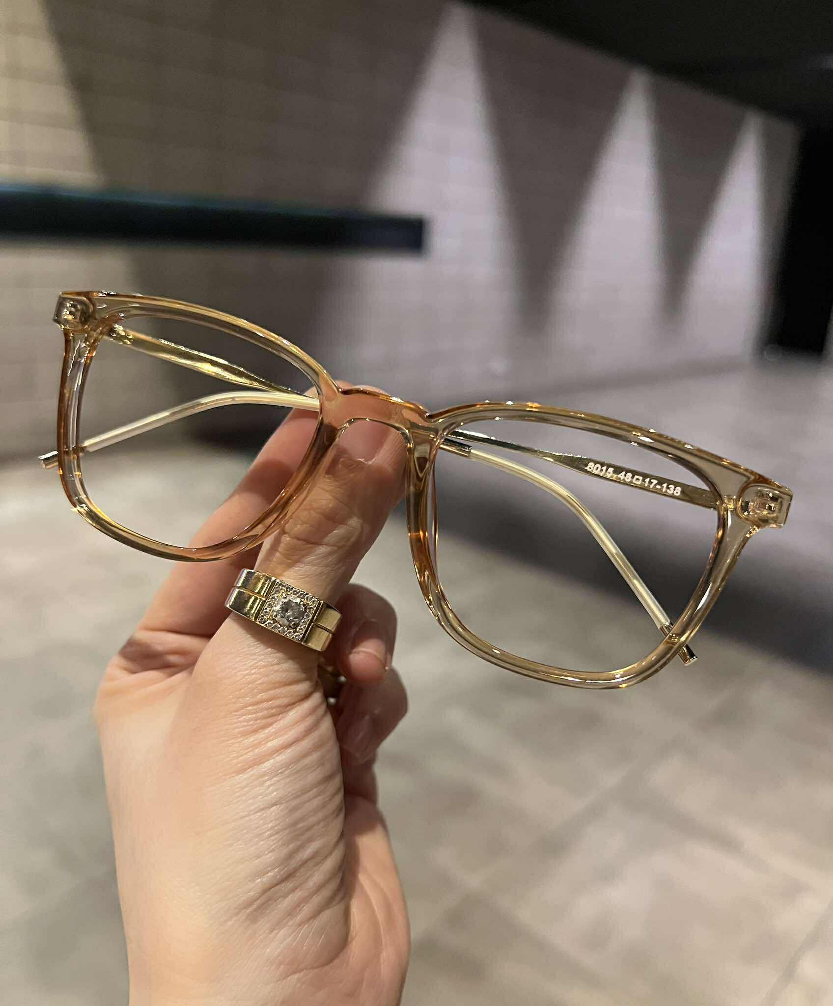 Kính mắt unisex thời trang nam nữ Mắt vuông màu thạch vàng thời trang Korea